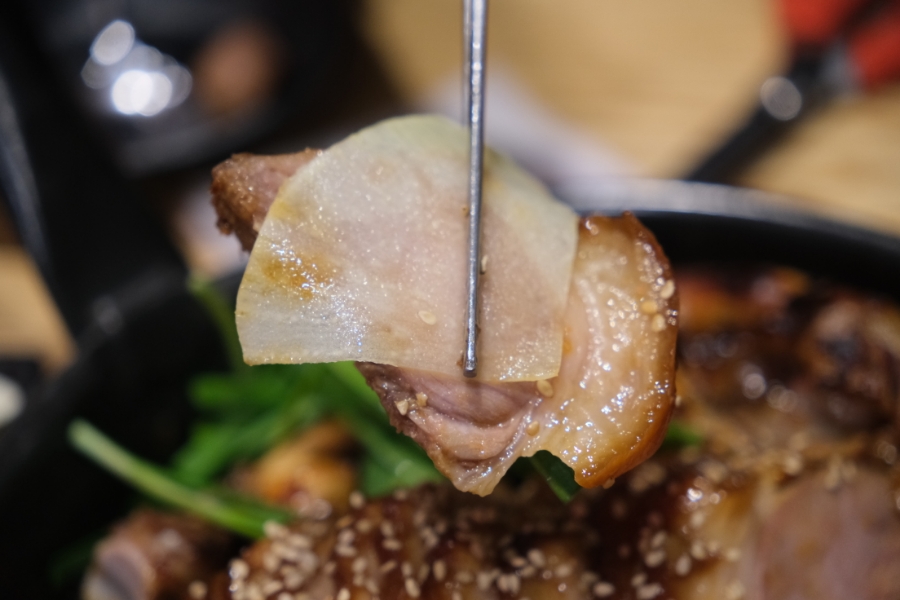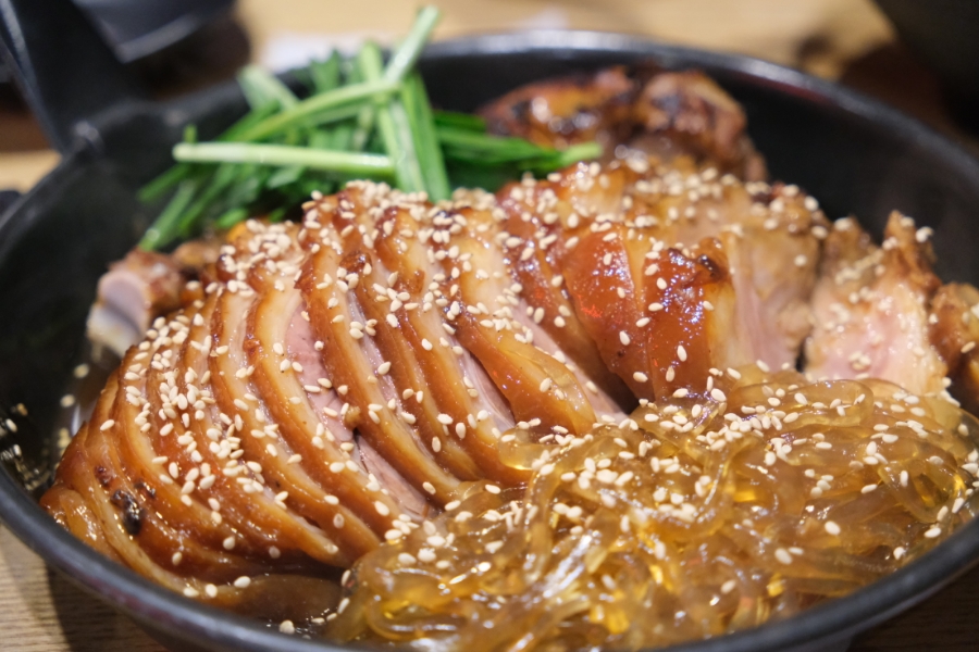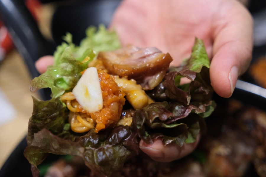 족발과 당면을 함께 소스에 찍어 먹으니 찜닭을 연상시키는 새로운 조합이 완성됩니다. 스모키향까지 더해져 입안 가득 풍미가 살아나더군요.